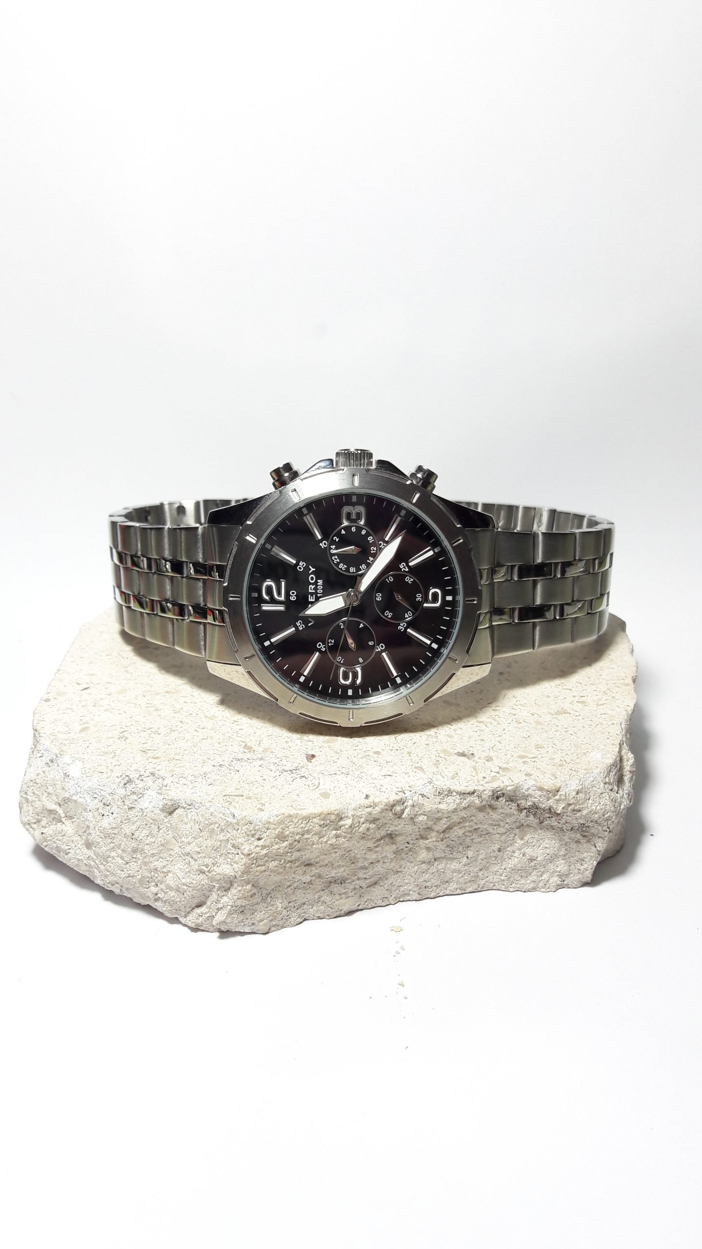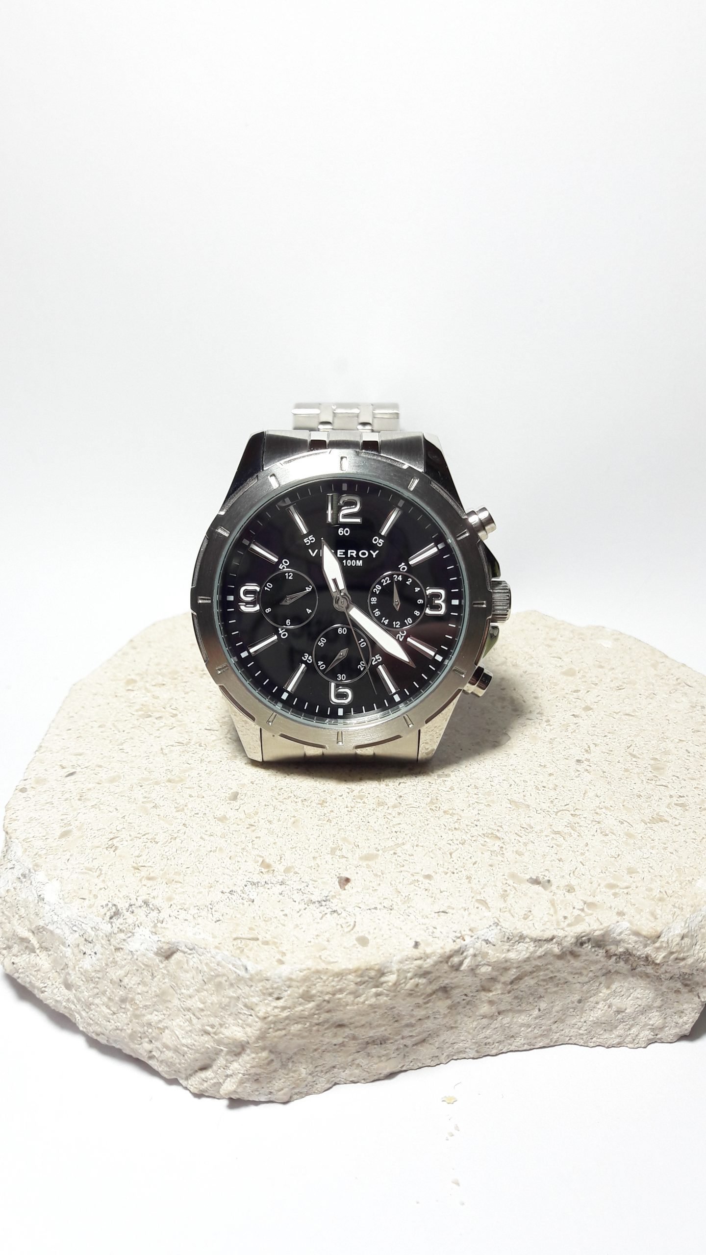 Reloj Multifunción de Viceroy de Caballero en acero, con esfera negra y sumergible a 100 metros.