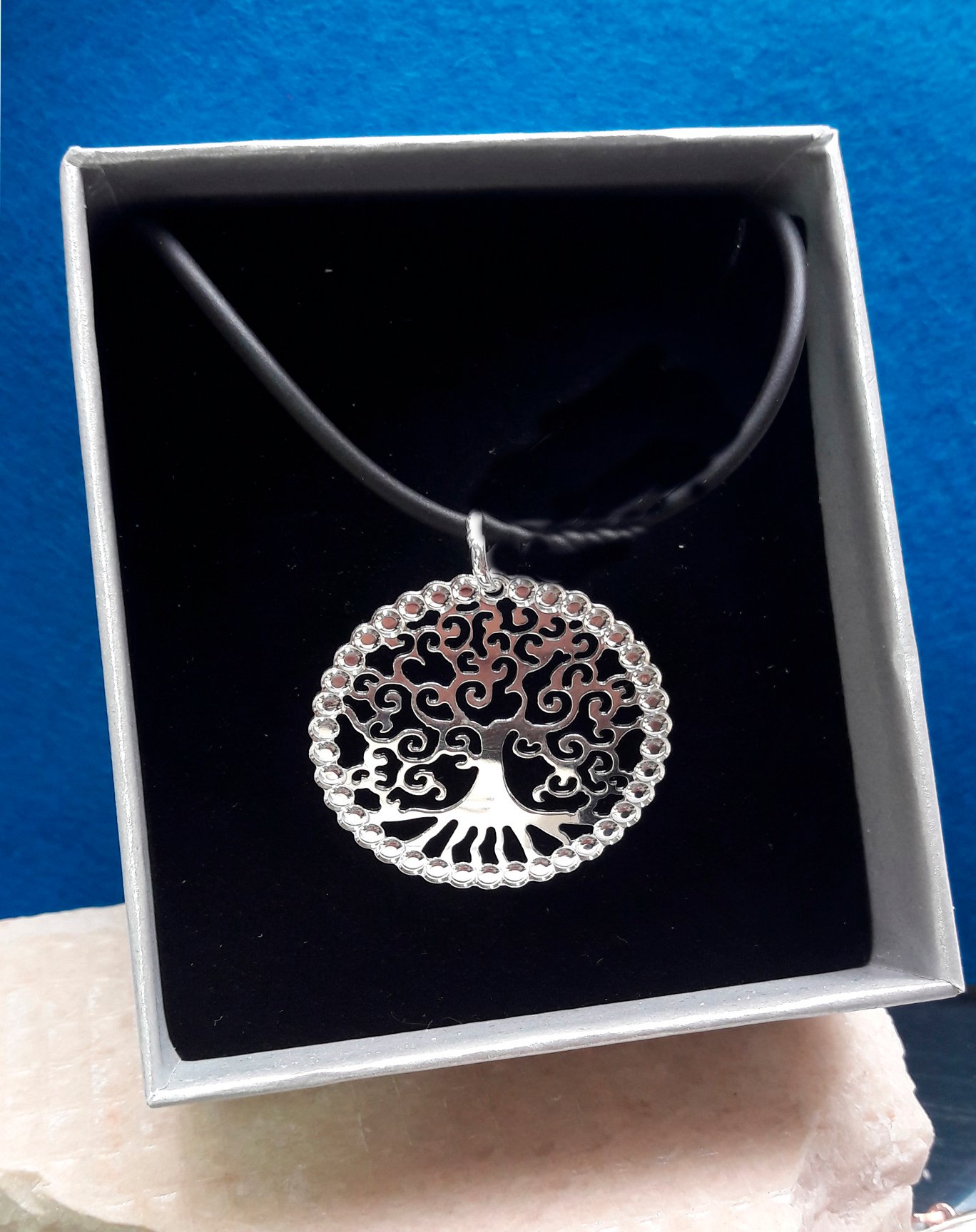 Gargantilla en plata de ley ,con cordón de caucho negro.